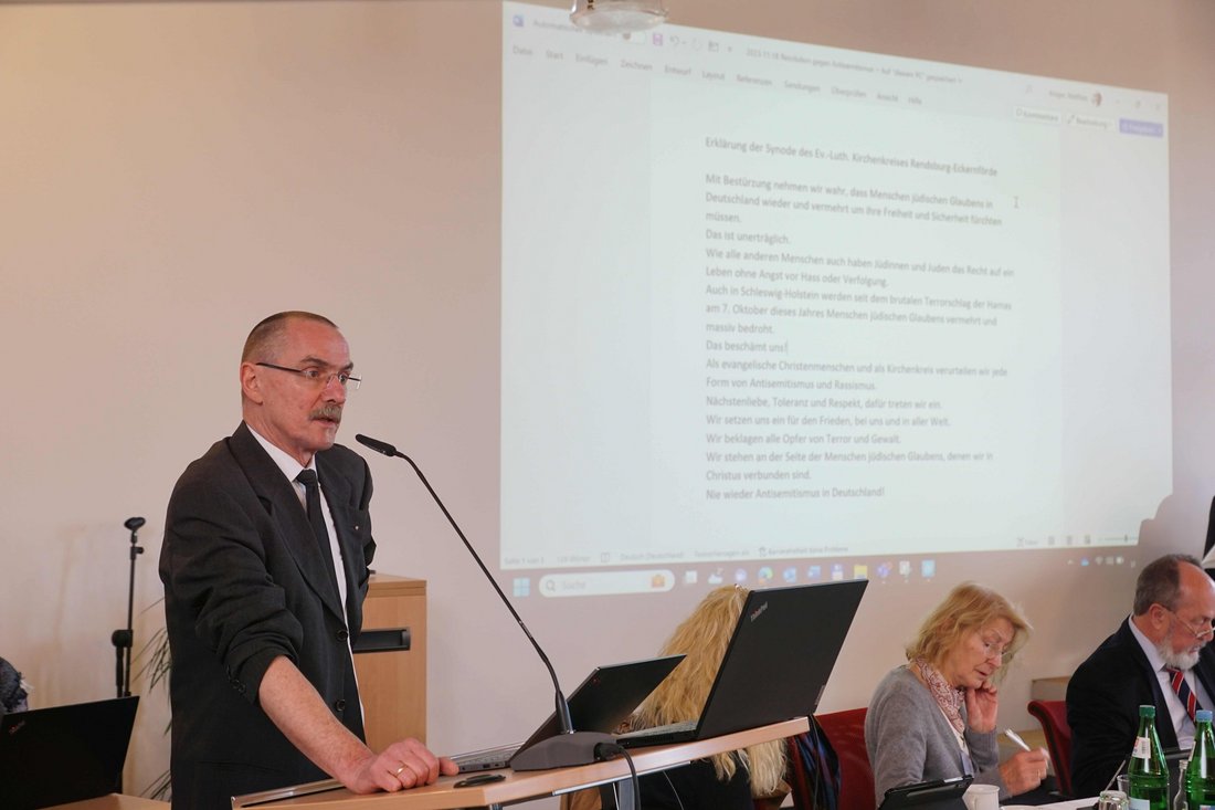 Das Hauptproblem sei, dass überhaupt so ein Text verabschiedet werden müsse, sagte Propst Matthias Krüger bei der Vorstellung der Erklärung. Aber die Lage in Schleswig-Holstein sei schwierig. „Auch in unserem Land werden seit dem brutalen Terrorangriff der Hamas am 7. Oktober dieses Jahres Menschen jüdischen Glaubens vermehrt und massiv bedroht.“ Der Synodale Pastor Rode Zimmermann-Stock unterstützte das Vorhaben. Für ihn sei das eine „Herzensangelegenheit“. Auch andere Synodale begrüßten die Erklärung, wünschten aber textliche Änderungen. Nach der Überarbeitung verabschiedeten die Synodalen die Erklärung. „Als evangelische Christenmenschen und als Kirchenkreis stellen wir uns gegen jede Form von Antisemitismus und Rassismus“, heißt es in dem Text. „Wir beklagen alle Opfer von Terror und Gewalt. Wir stehen an der Seite der Menschen jüdischen Glaubens. Nie wieder Diskriminierung und Antisemitismus in Deutschland.“